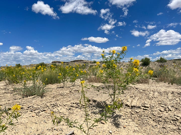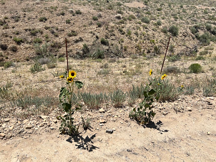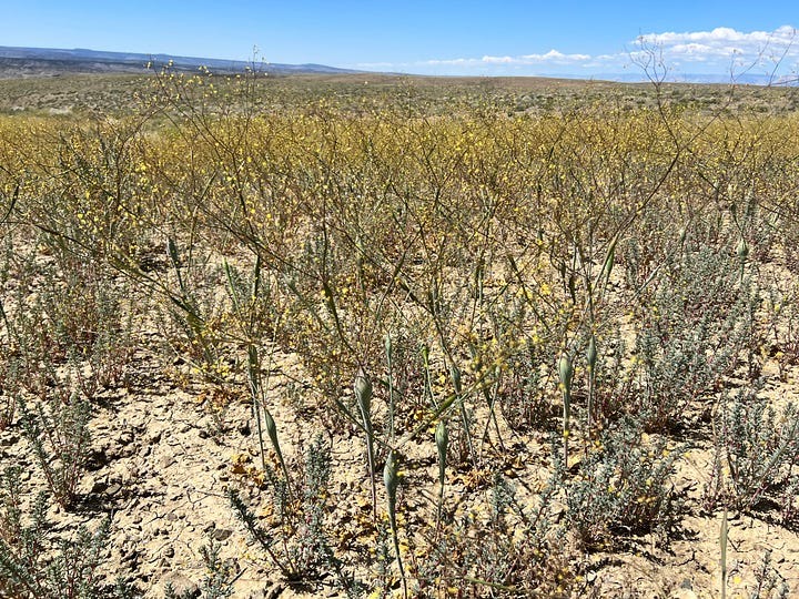 Last summer and fall, I traveled throughout Carbon County, in habitats that were similar to what my backyard would have been before humans cleared it with banal dreams of monoculture. I made a mental note of what plant species proliferated in this particular desert. If anything was flowering, I checked back weekly to collect seed. I hiked with sandwich bags that I stuffed full with the seeds of globemallow, desert trumpet, palmer’s penstemon, milkweed, Rocky Mountain bee plant, yellow bee plant, primrose, yucca, sunflower, four-wing saltbush, snakeweed and rabbitbrush.